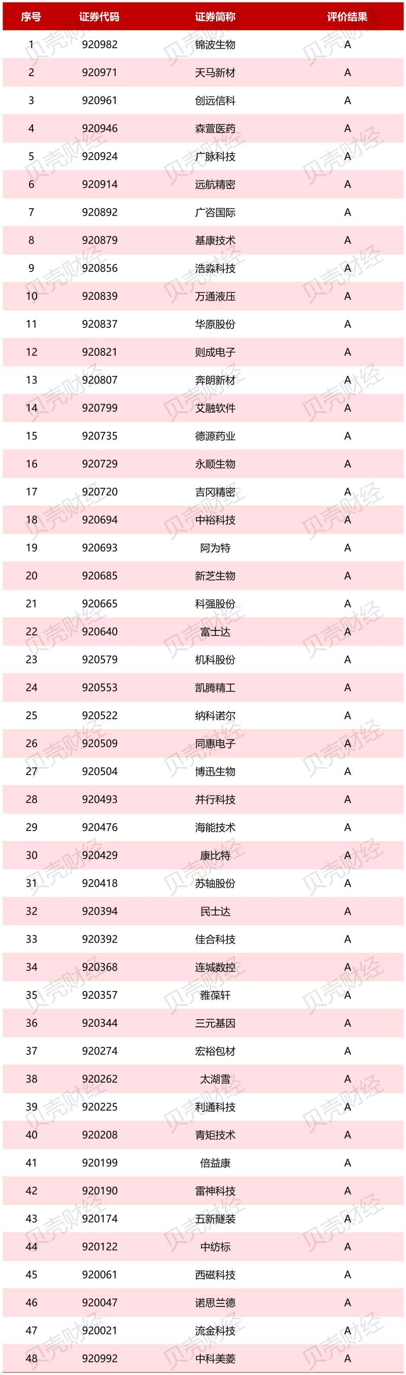北交所信披评价中获得A类评价的48家公司。新京报贝壳财经记者根据北交所官网信息制图